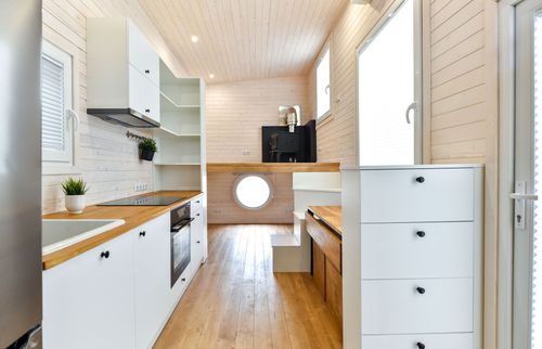 Starting from this unfurnished model you can add a kitchen, furnishing and heating of choice and tailor the style and interior design exactly to your wishes by choosing from a wide range of eco-friendly materials, colours and off-grid options.